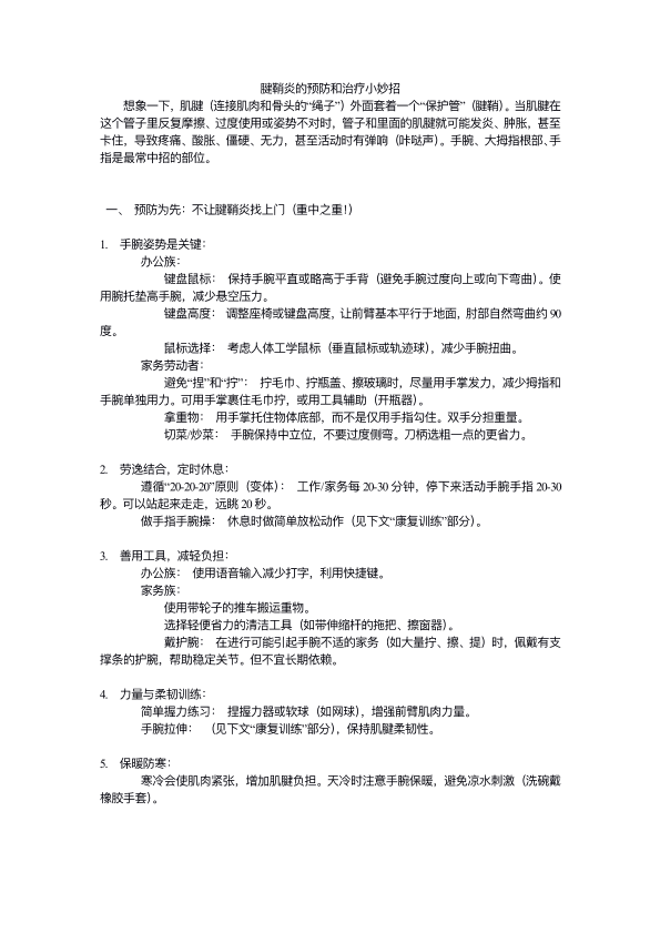 腱鞘炎的预防和疗小妙招