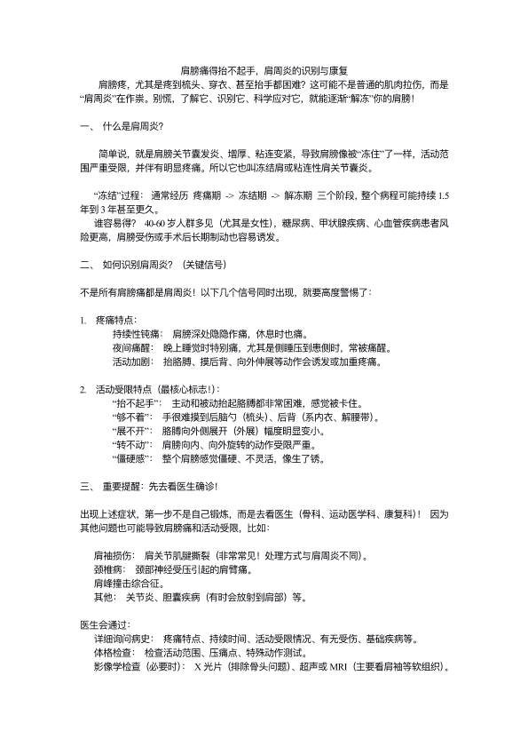 肩膀痛得抬不起手,肩周炎的诊断与康复