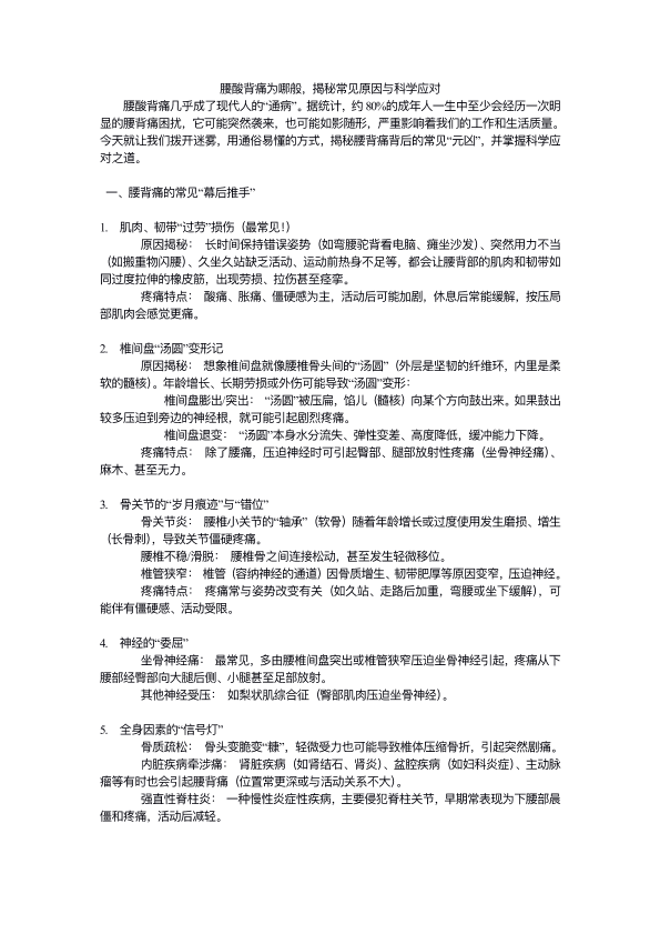 腰酸背痛为哪般,揭秘常见原因与科学应对