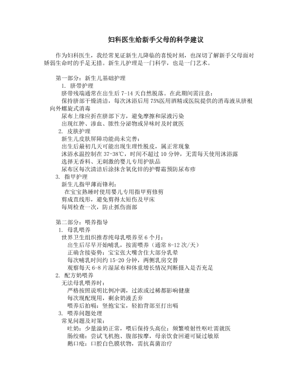 妇科医生给新手父母的科学建议