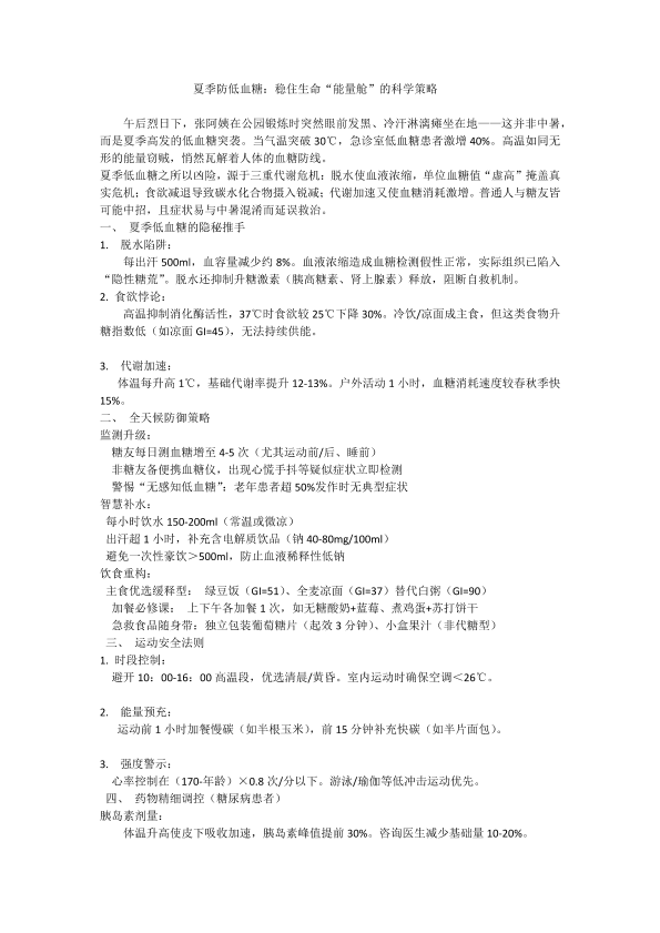 夏季防低血糖:稳住生命“能量舱”