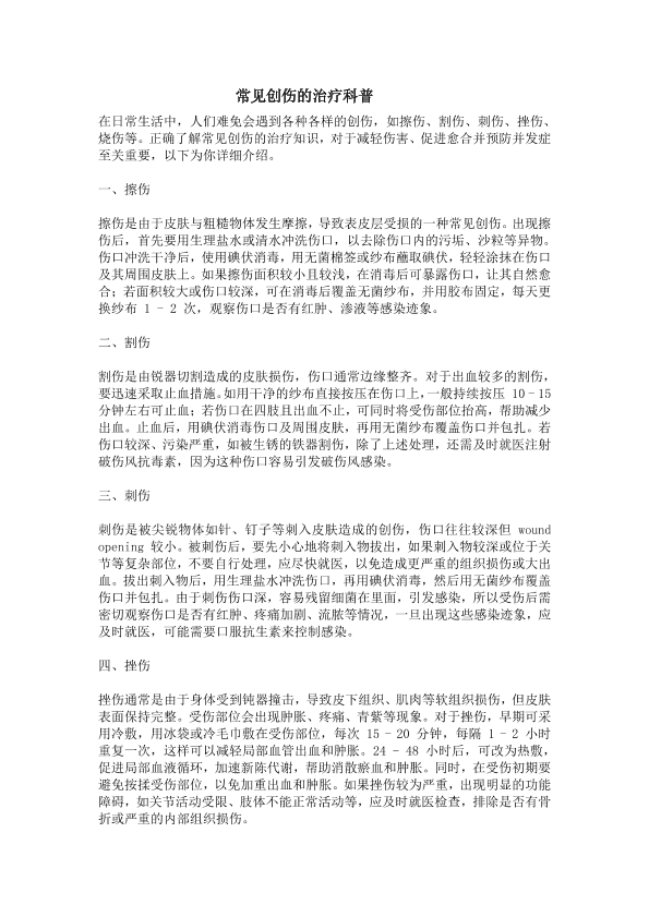 常见创伤的治疗科普