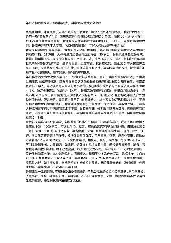 年轻人你的骨头正在静悄悄流失,科学预防骨流失全攻略