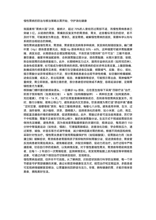慢性胃病的防治与根治策略从胃开始,守护消化健康