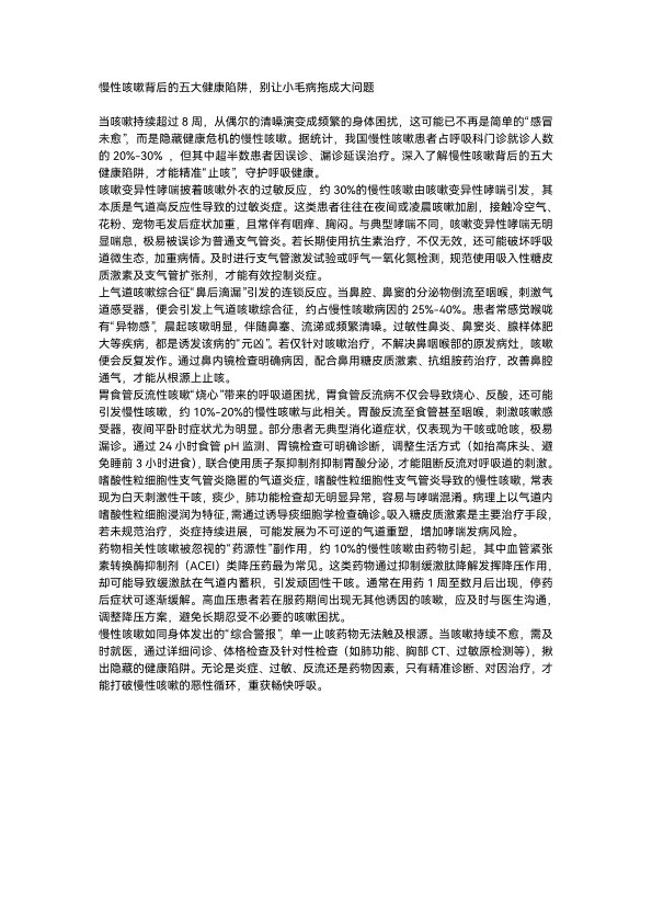 慢性咳嗽背后的五大健康陷阱, 别让小小问题拖成大问题
