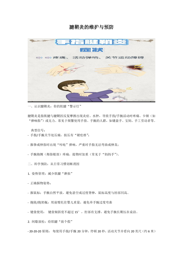 腱鞘炎的日常维护