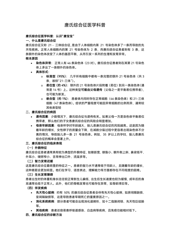 唐氏综合征医学科普