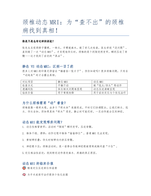 颈椎动态MRI:为“查不出”的颈椎病找到真相!