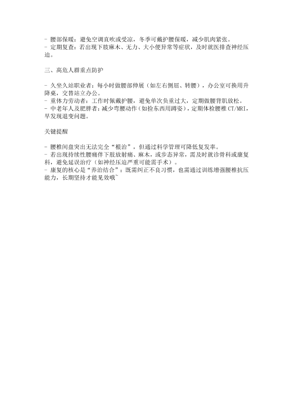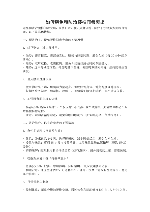 如何避免和防治腰椎间盘突出