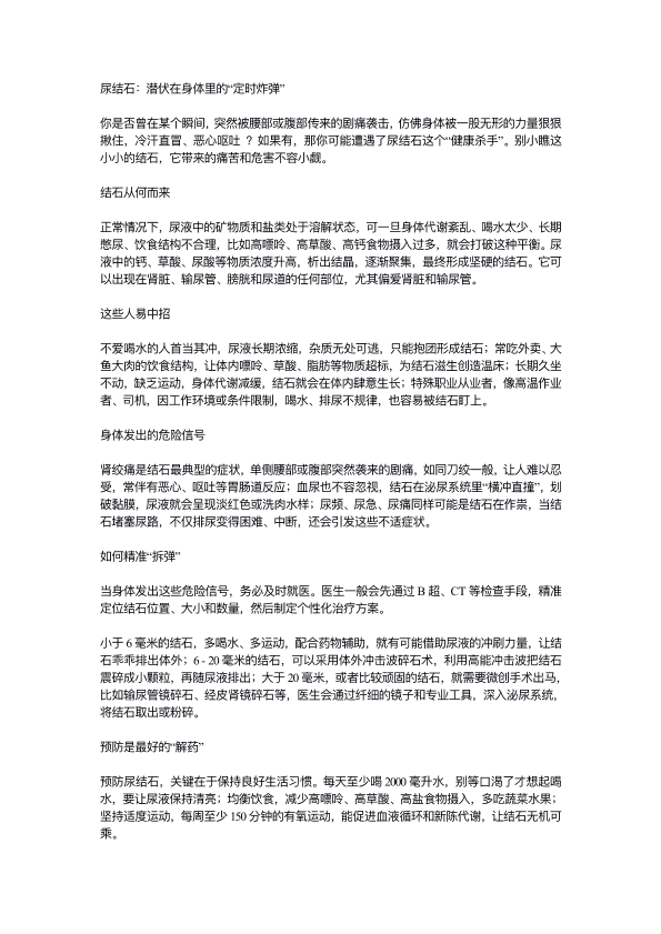 尿结石:潜伏在身体里的定时炸弹