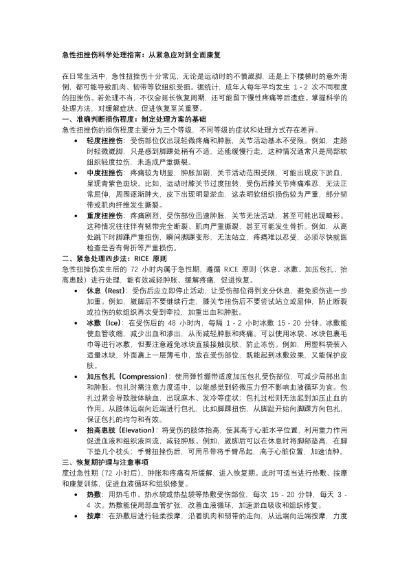 急性扭挫伤科学处理指南:从紧急应对到全面康复