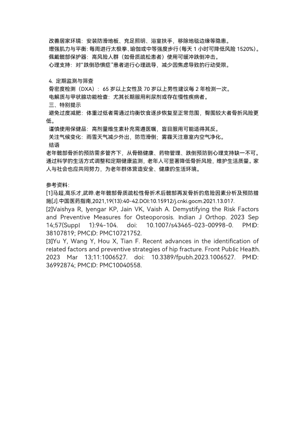 老年髋骨骨折风险