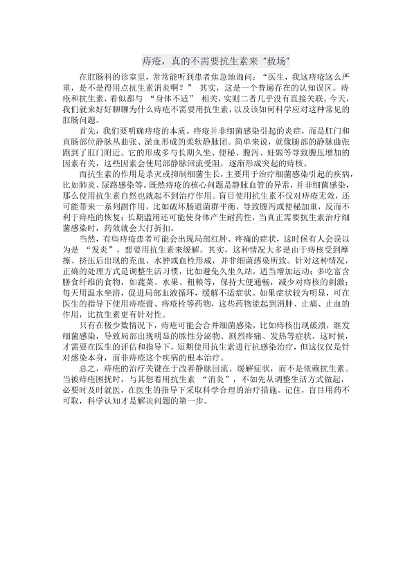 痔疮,真的不需要抗生素来“救场”