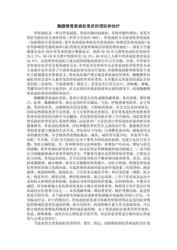 胸腰椎骨质疏松骨折的预防和治疗