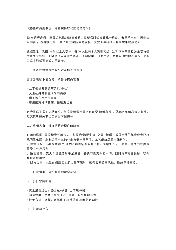膝盖疼痛别忽视!揭秘髌骨软化症的防与治