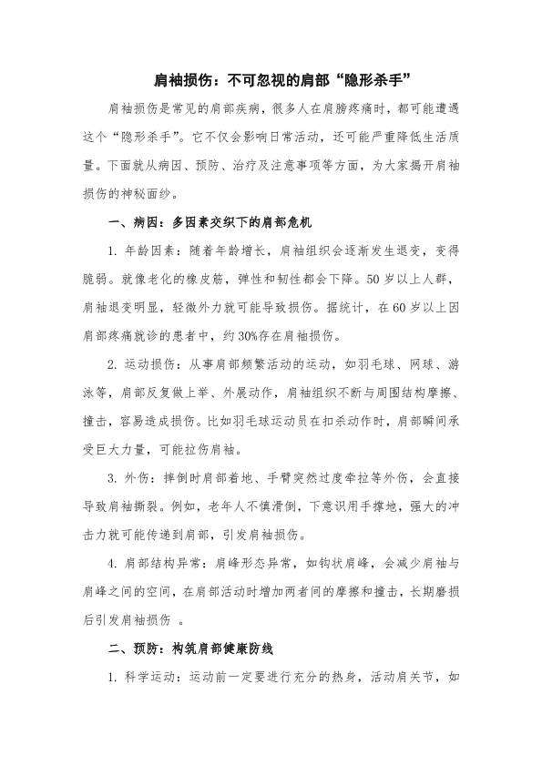 肩袖损伤:不可忽视的肩部“隐形杀手”