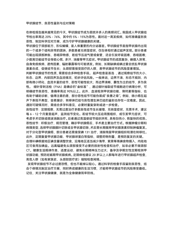 甲状腺结节,良恶性鉴别与应对策略