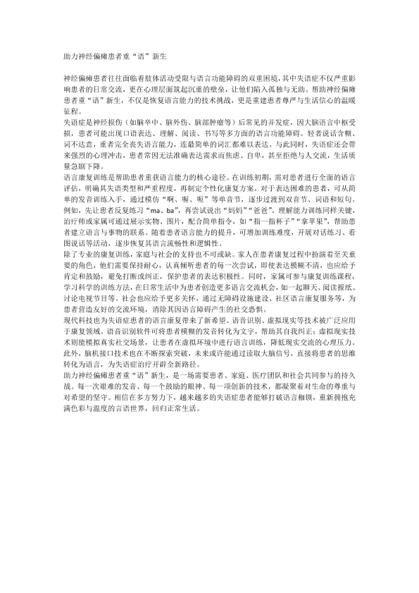 助力神经偏瘫患者重”语”新生