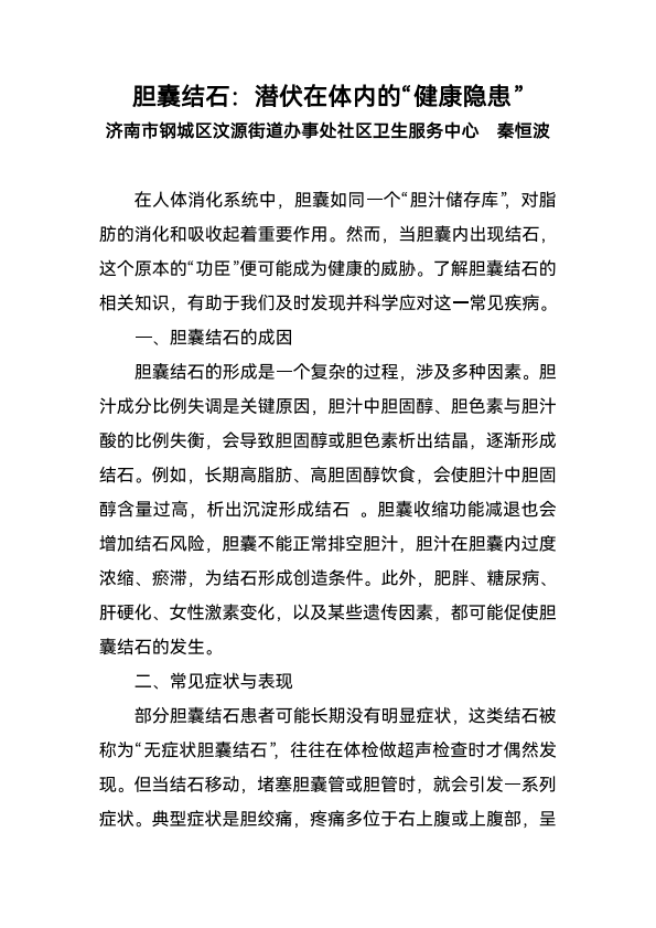 胆囊结石:潜伏在体内的“健康隐患”