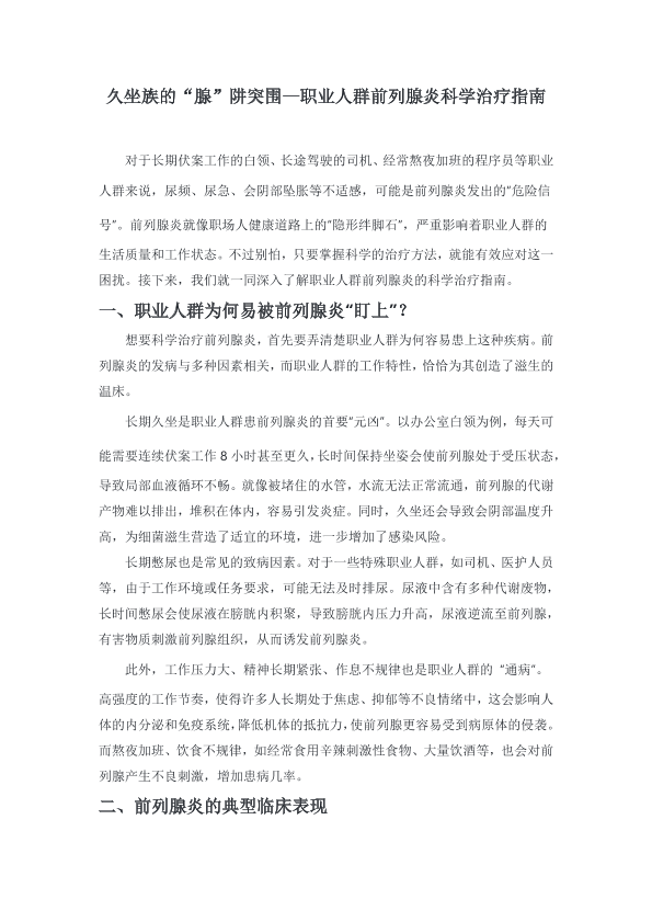 《久坐族的“腺”阱突围—职业人群前列腺炎科学治疗指南》