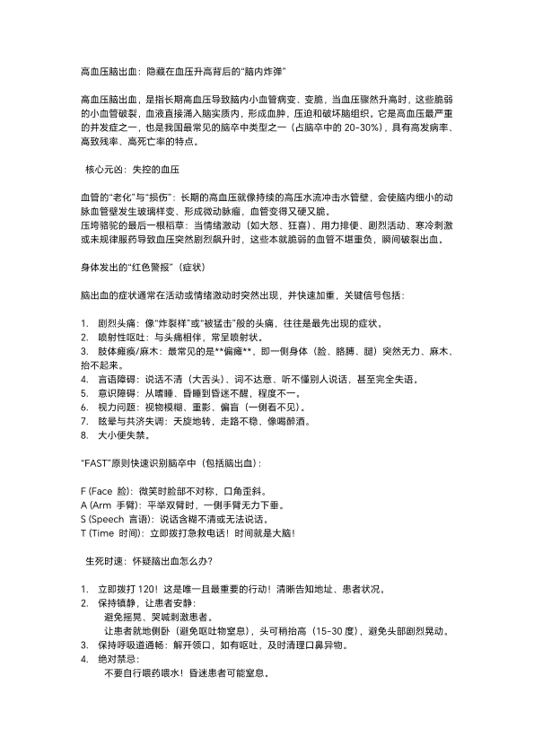 高血压脑出血,隐藏在血压升高背后的“脑内炸弹”