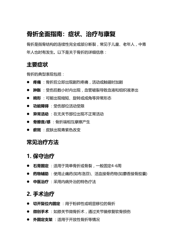 骨折全面指南:症状、治疗与康复
