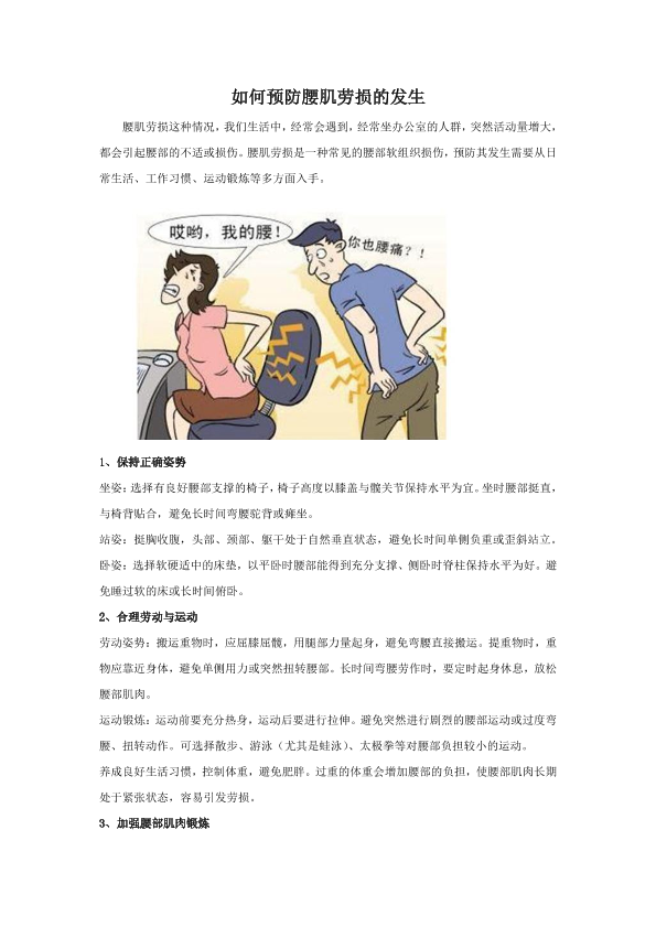 如何预防腰肌劳损的发生
