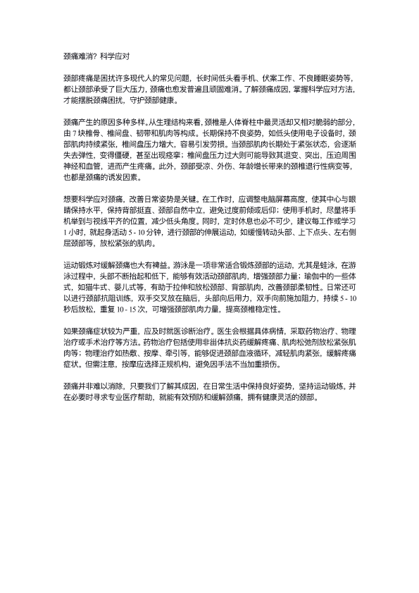 颈痛难消?科学应对