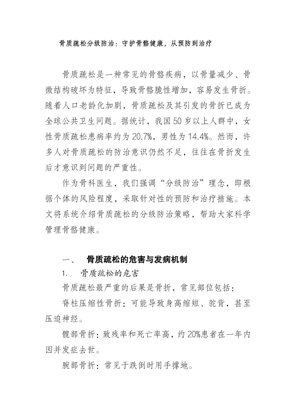 骨骼疏松分级防治:守护骨骼健康,从预防到治疗
