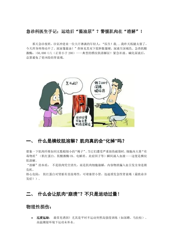 急诊科医生手记:运动后"酱油尿?警惕肌肉在"溶解"!