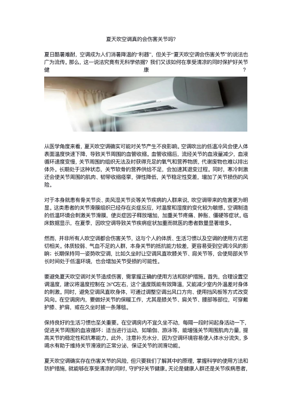 夏天吹空调真的会伤害关节吗?