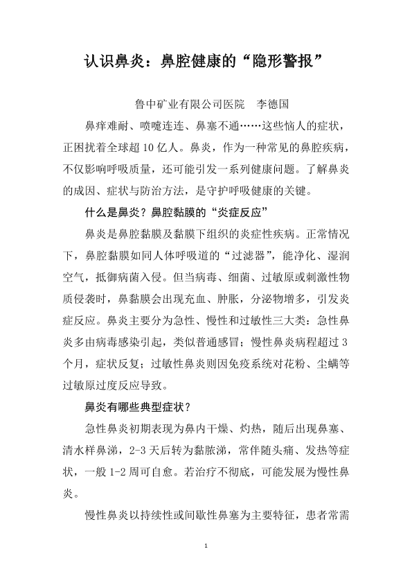 认识鼻炎:鼻腔健康的“隐形警报”
