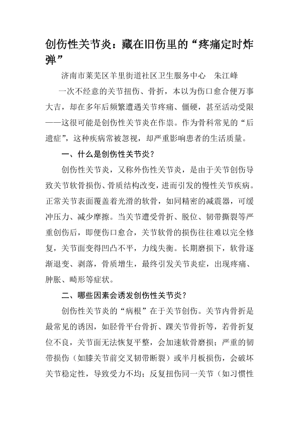 创伤性关节炎:藏在旧伤里的“疼痛定时炸弹”