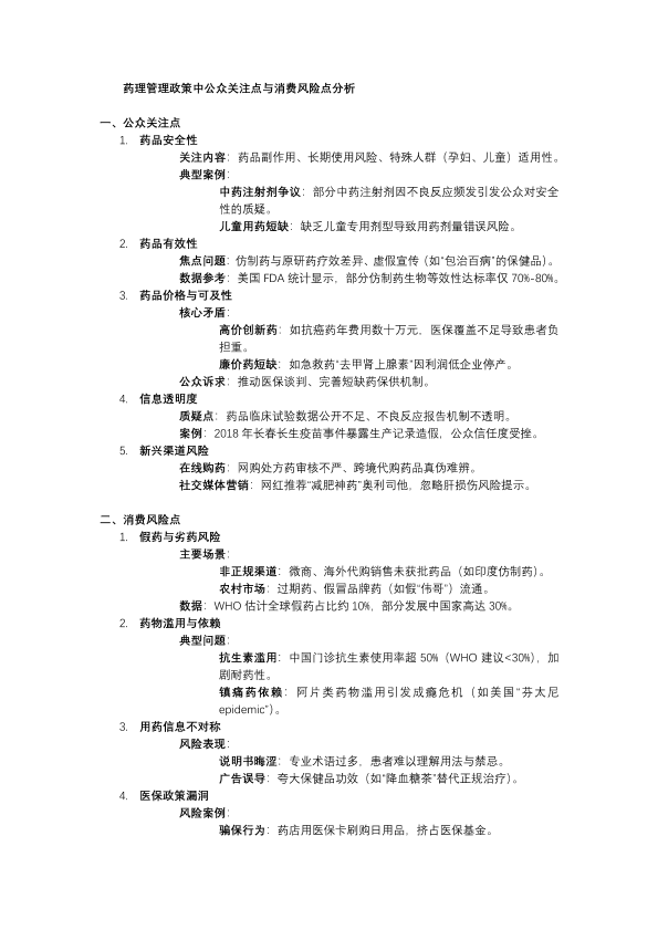 药理管理政策中公众关注点和消费风险点