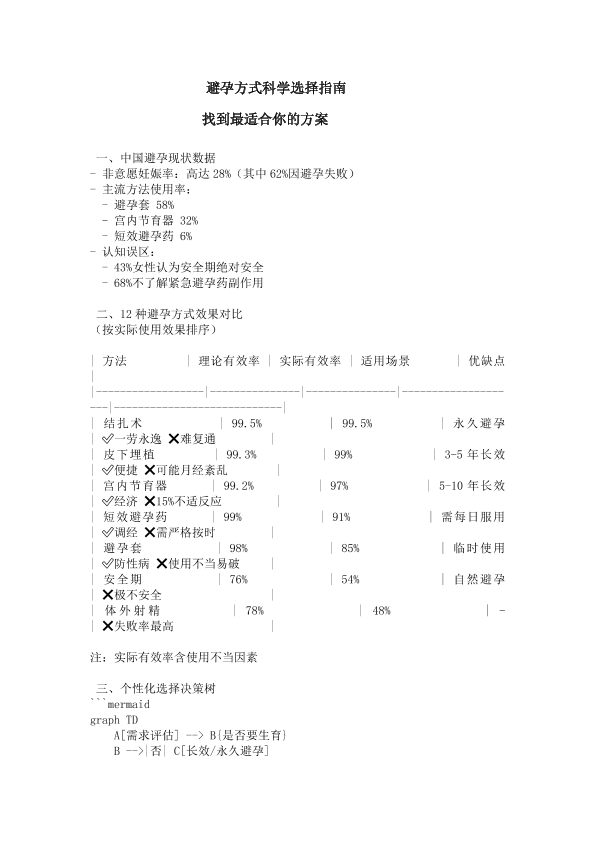 避孕方式科学选择指南