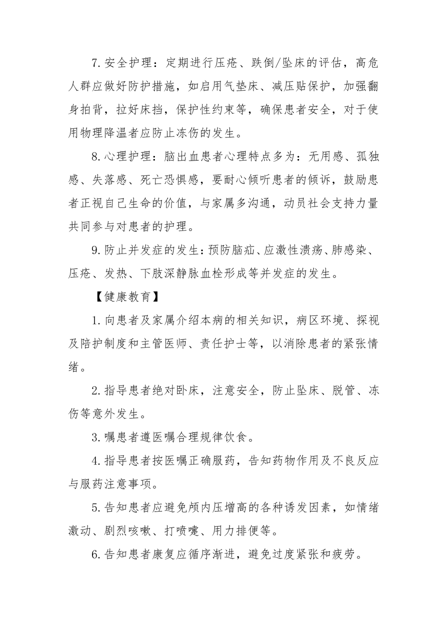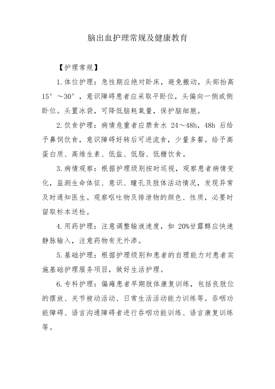 脑出血护理常规健康教育