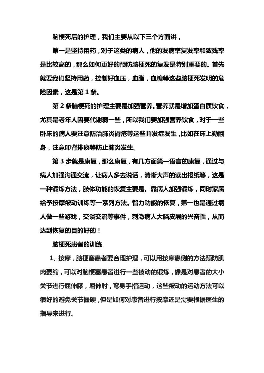 脑梗死患者的康复护理及训练