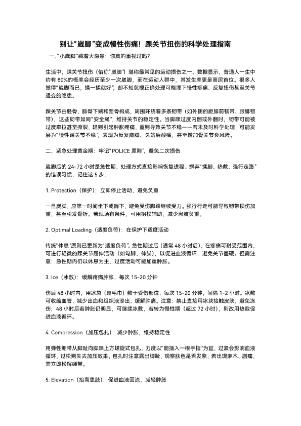 踝关节扭伤应急治疗全指南:从判断到处理的黄金法则