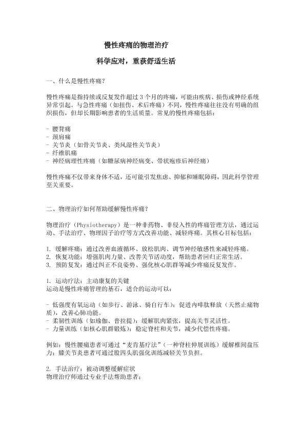 慢性疼痛的物理治疗
