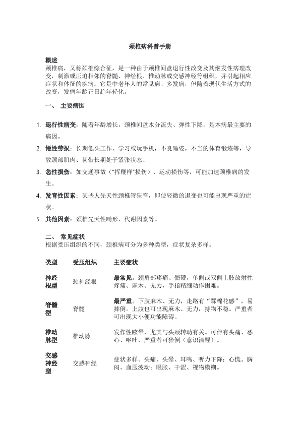 颈椎病科普手册