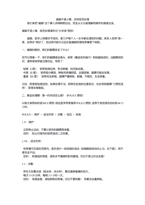 崴脚不是小事,怎样规范处理
