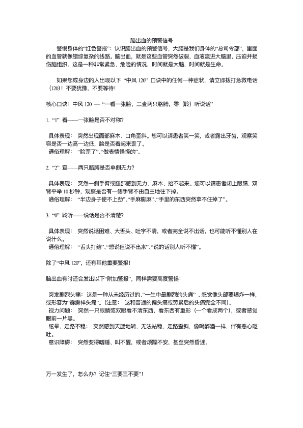脑出血的预警信号