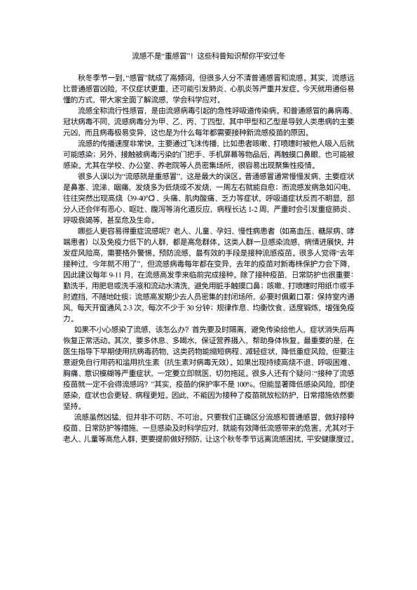 流感不是“重感冒”,这些科普知识要知道