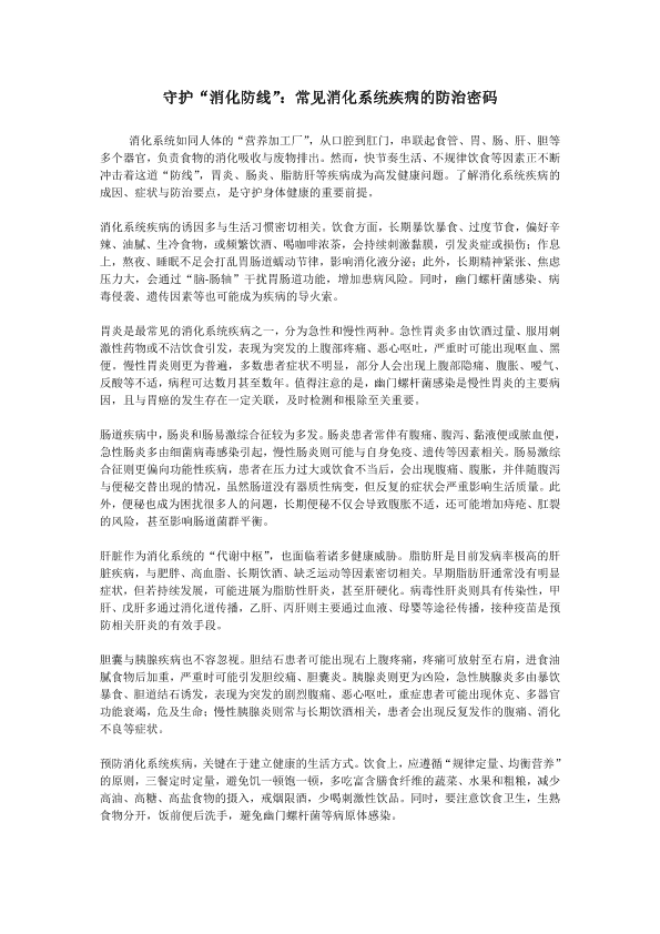 守护消化防线:常见消化系统疾病的防治密码