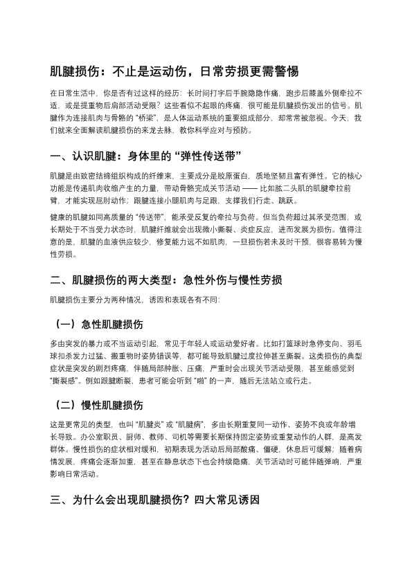 肌腱损伤:不止是运动伤,日常劳损更需警惕