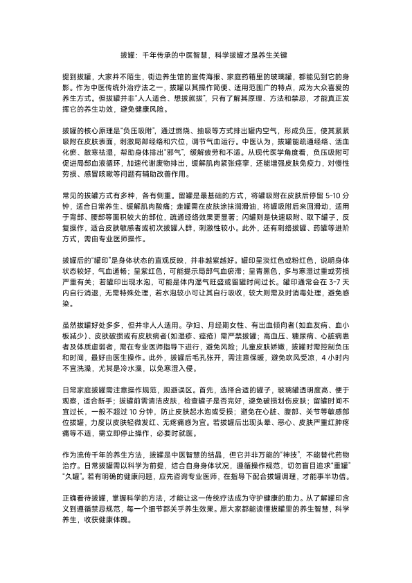 拔罐:千年传承的中医智慧,科学拔罐才是养生关键