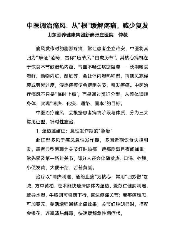 中医调治痛风:从“根”缓解疼痛,减少复发