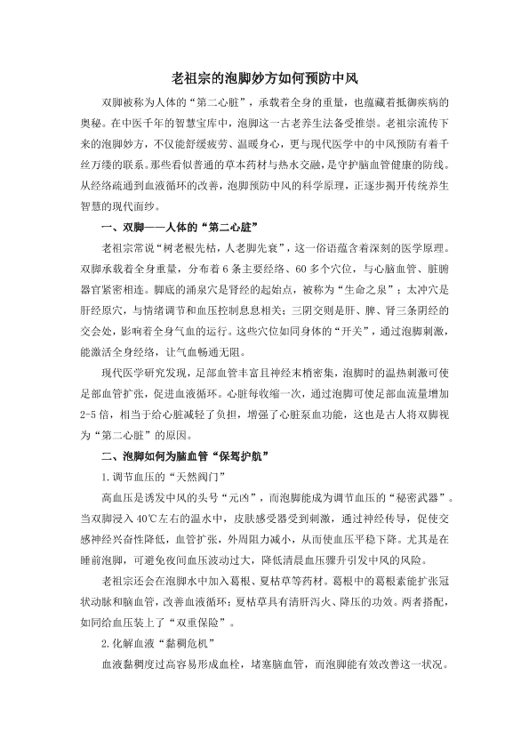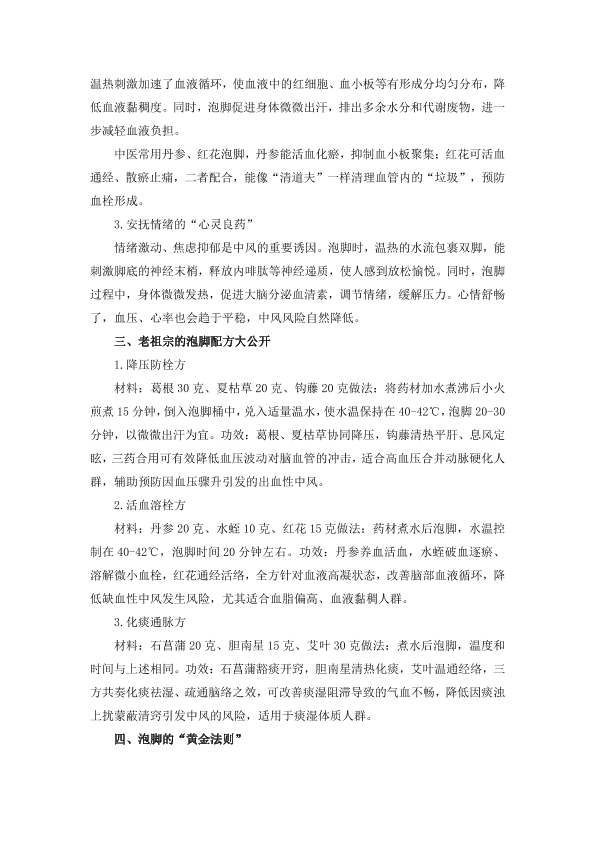 泡脚妙方如何预防中风