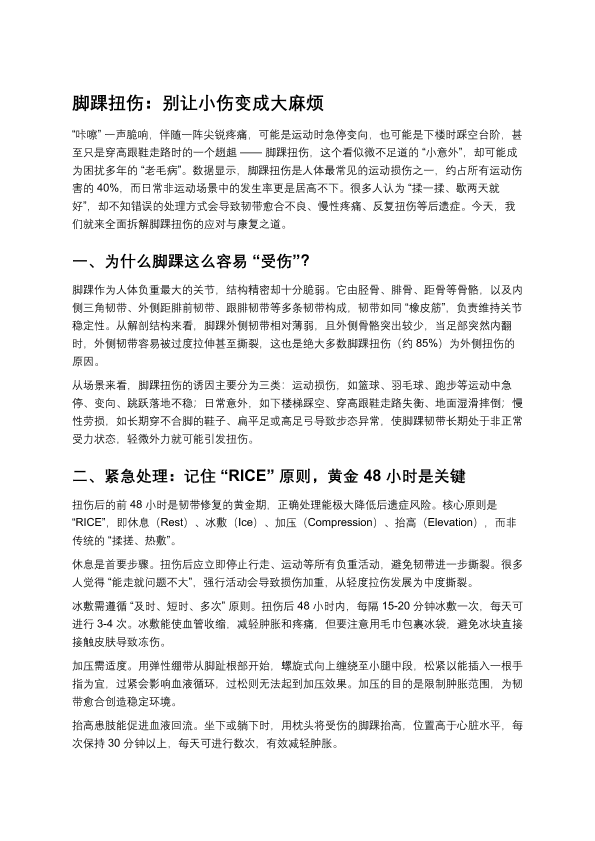 脚踝扭伤:别让小伤变成大麻烦