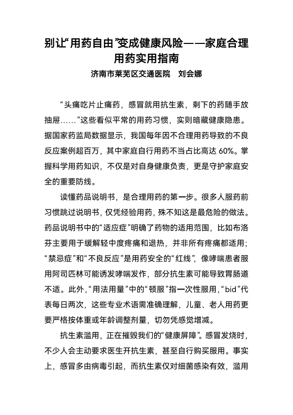 别让“用药自由”变成健康风险——家庭合理用药实用指南